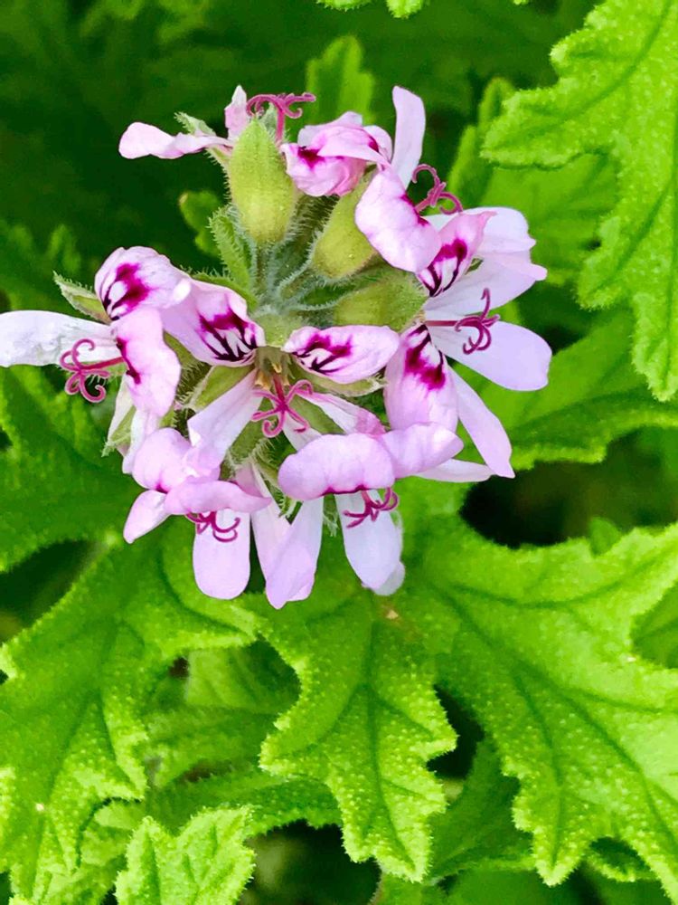 匂い立つようなゼラニウムの香りと個性的な花が咲き始めました