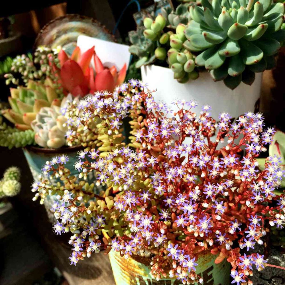 セダムちゃんにブルーのお花ですか😍可愛い❤たまりませんね~😍わが家では白か黄色ばっかですよ~
