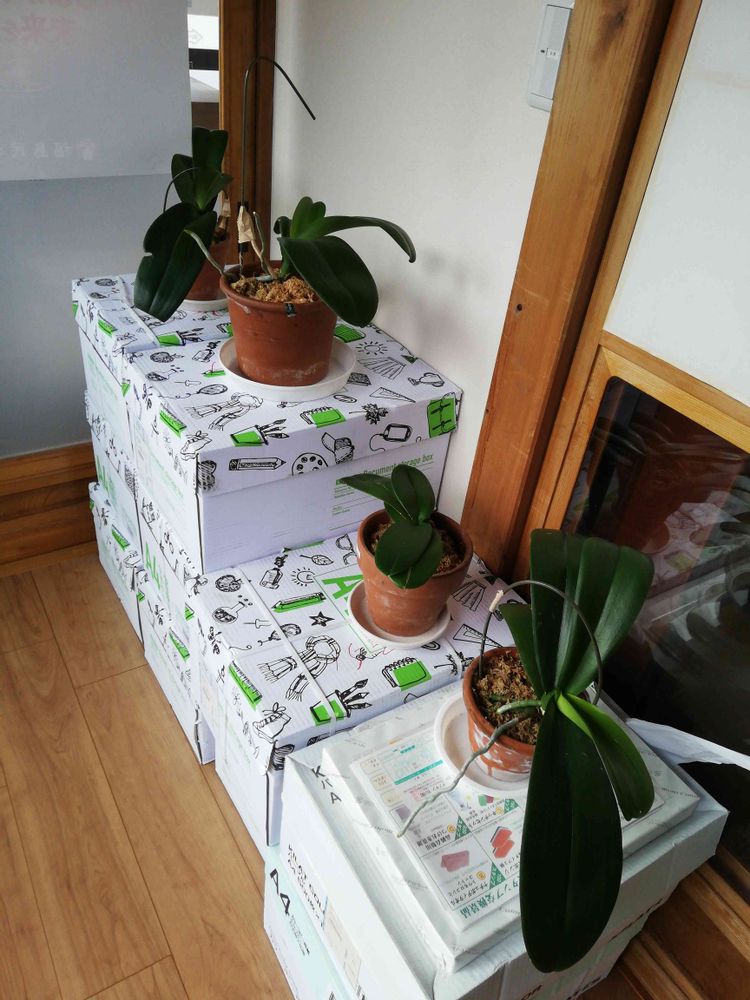 おはようございます。我が家の同居植物。胡蝶蘭。