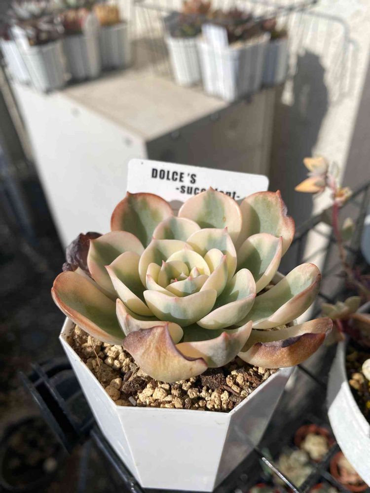 アップルフラワーちゃんはエケベリア?新品種ですか?GS内検索かけても出てこなかったです🥲(どんな子か気になる💓)