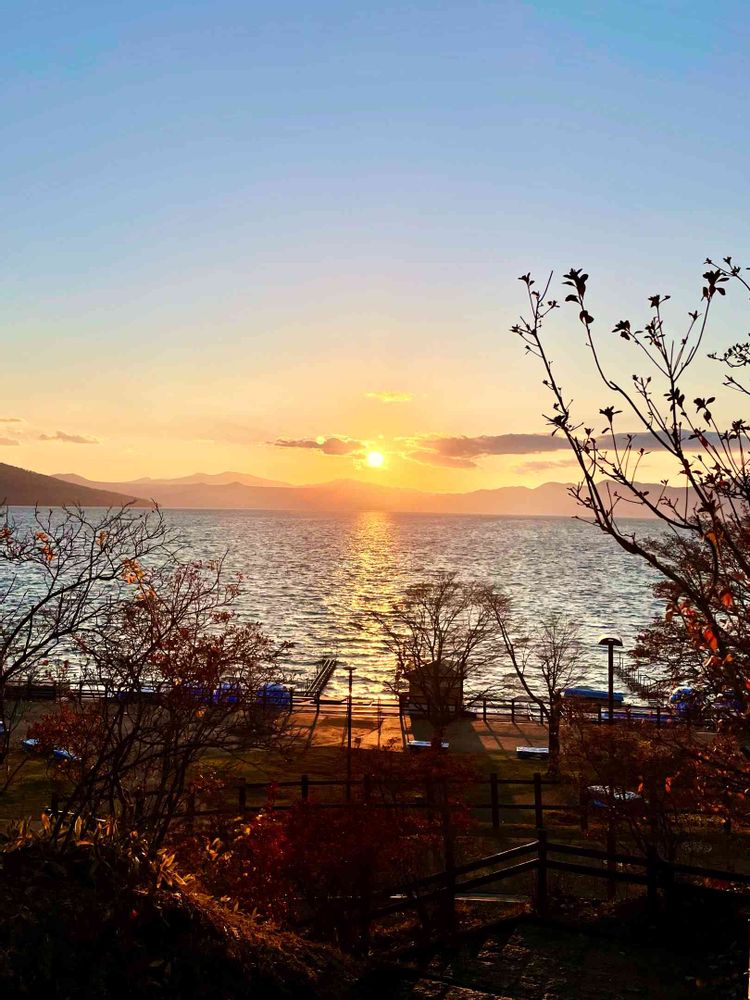 支笏湖の晩秋🍁🍂黄昏時の物悲しさもありますが、空気も水も澄んでいて、気持ち良かったです(๑♡∀♡๑)