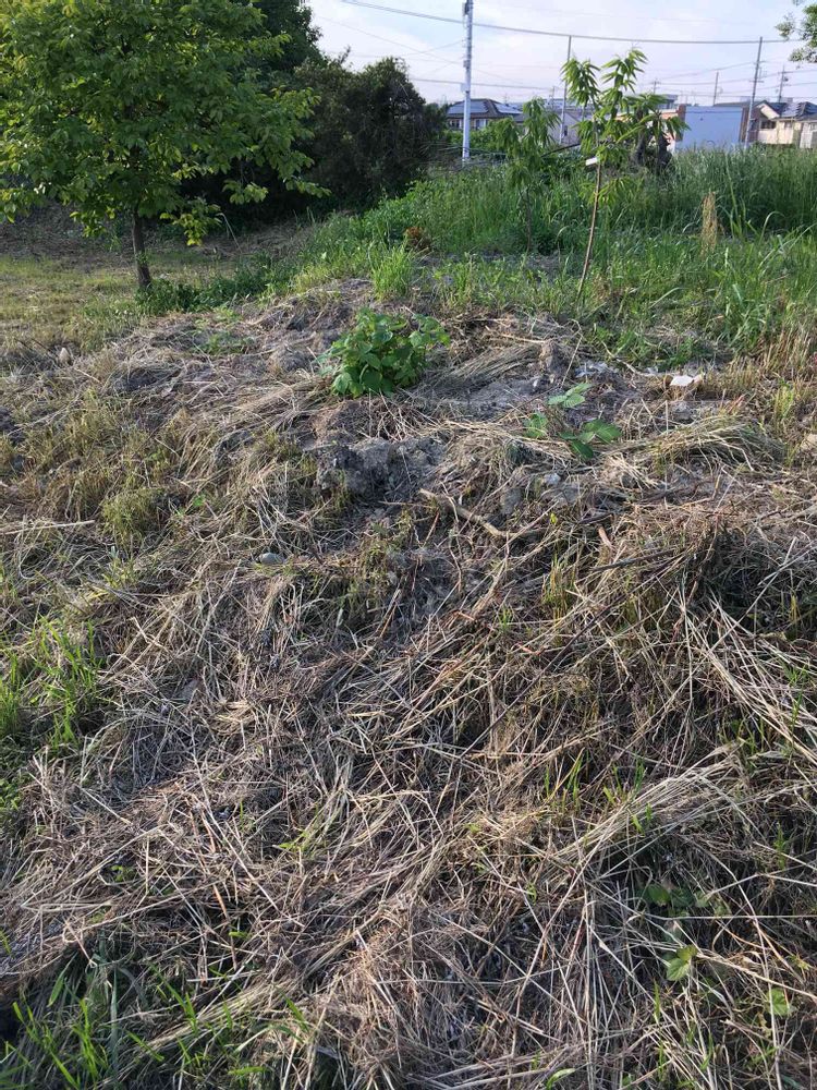 だいぶ見にくいですが、畑の淵の土手にラズベリーを4株植えました!