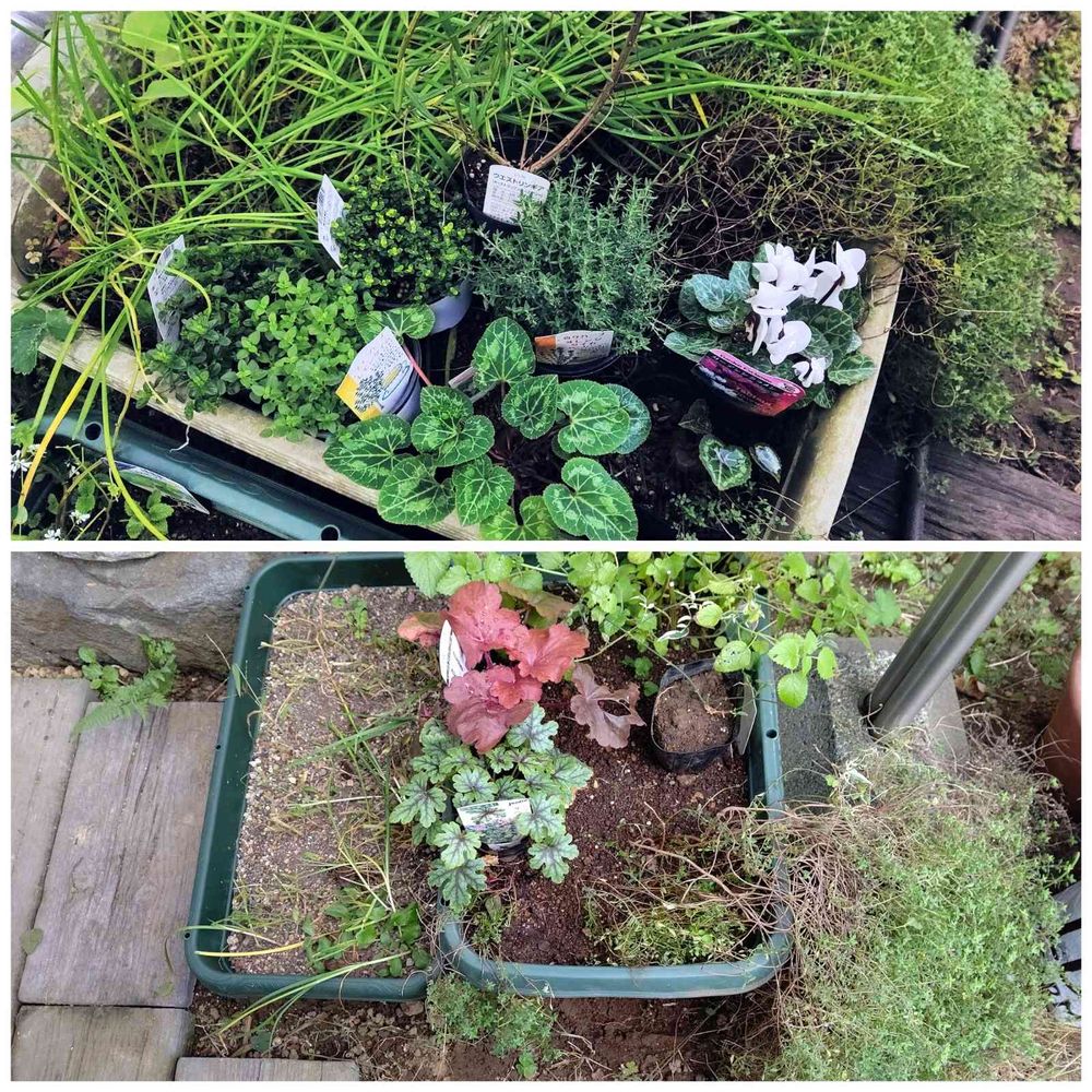 15年以上物のタイムを枯らしたくないため躊躇していましたが、プラ鉢の経年劣化が酷く見苦しいため、やっと植え替えた!