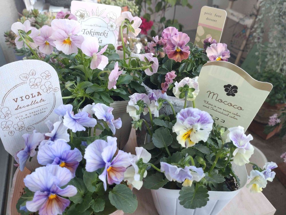 ビオラデコルテ↙️とときめきビオラ↖️とリーフをいくつか、鉢を2つ購入しました😊