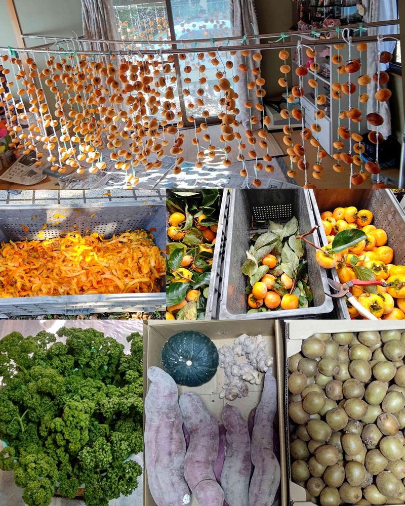 こちらは、次郎柿の産地今日も3人から、ダンボール3箱分頂き 前のも合わせて5箱もあります。
