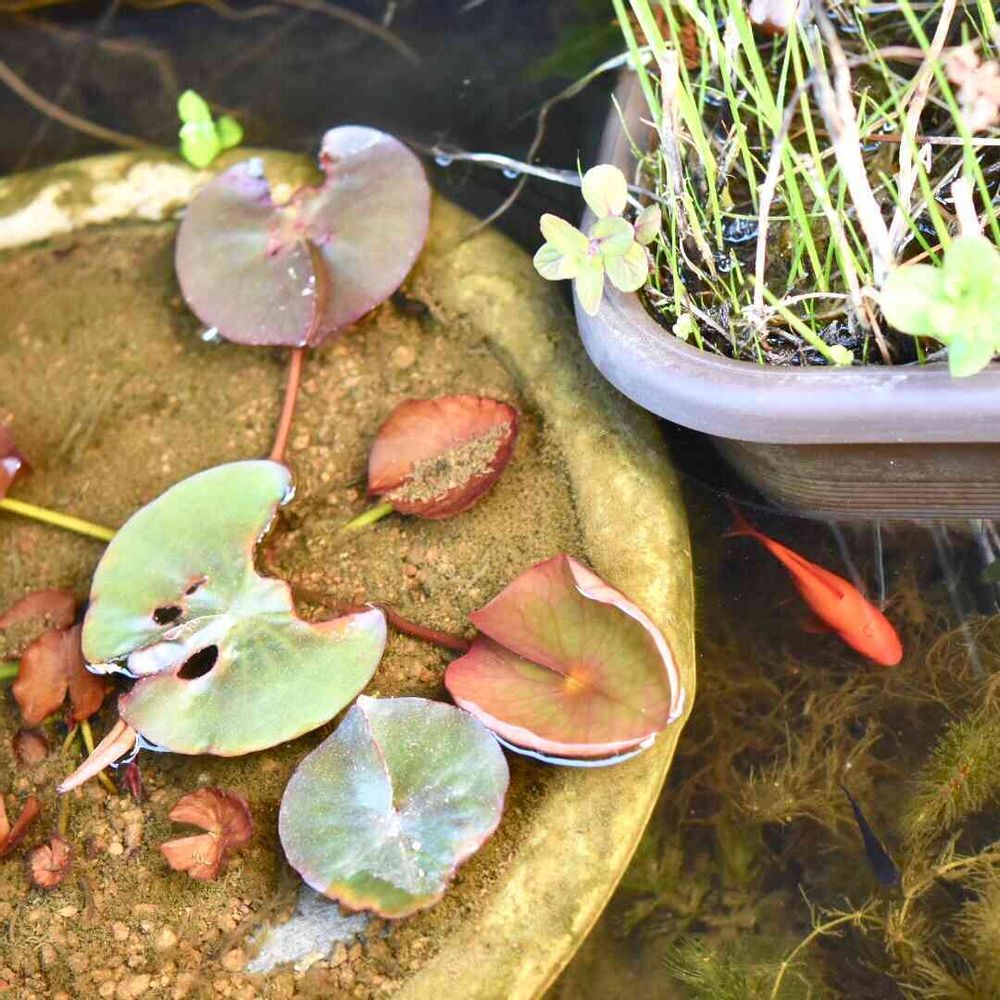 しばらく咲いていない温帯スイレンを咲かせるべく、月一肥料埋め活動実施中。