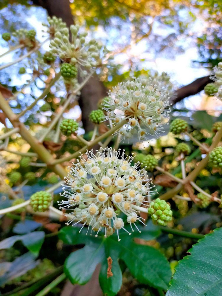 最近 ヤツデの投稿が多く、美しさを再認識💕 私も撮りたいのですが なかなか難しい場所で💧 よそのお宅🏡を盗撮してる不審者?と間違われそうで 諦めてます😓 他に咲いてないかなぁ。
