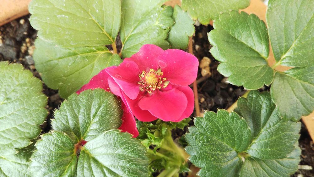 花と実が両方楽しめるそうな、ローズベリーレッド🍓