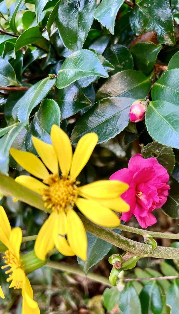 ツワブキと山茶花💛💖
