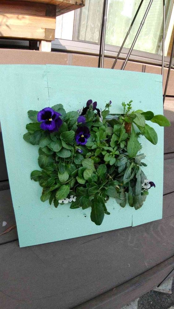 暑い陽を浴びながらのDIY作り。家にあるカレンジェラ、パンジー、シレネなどを埋め込みました。