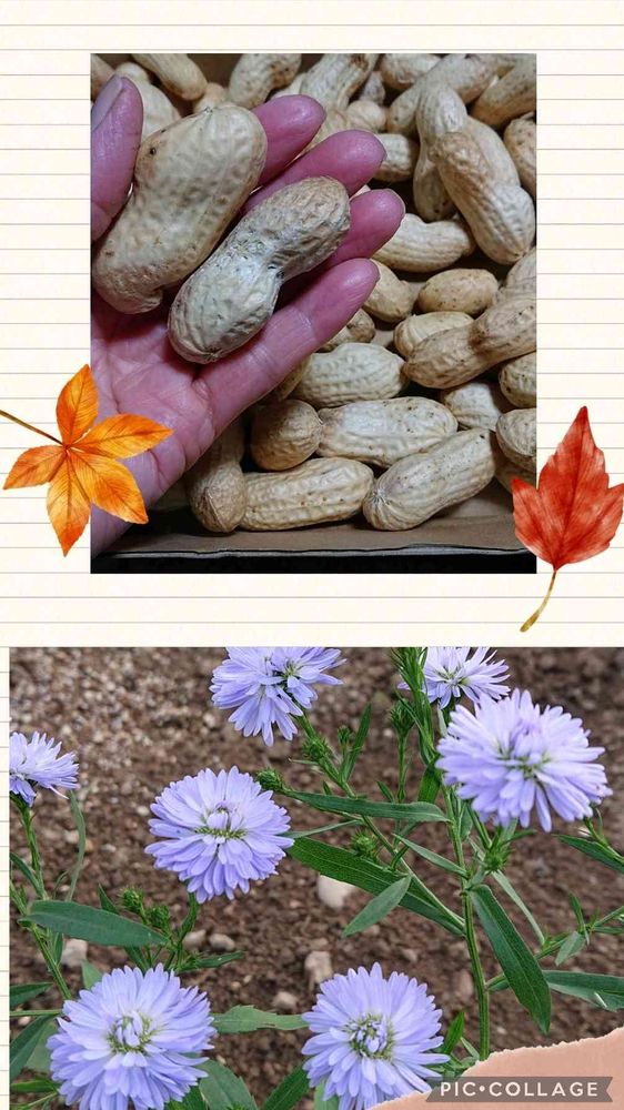 実家の帰り道、ジャンボピーナッツと孔雀草?