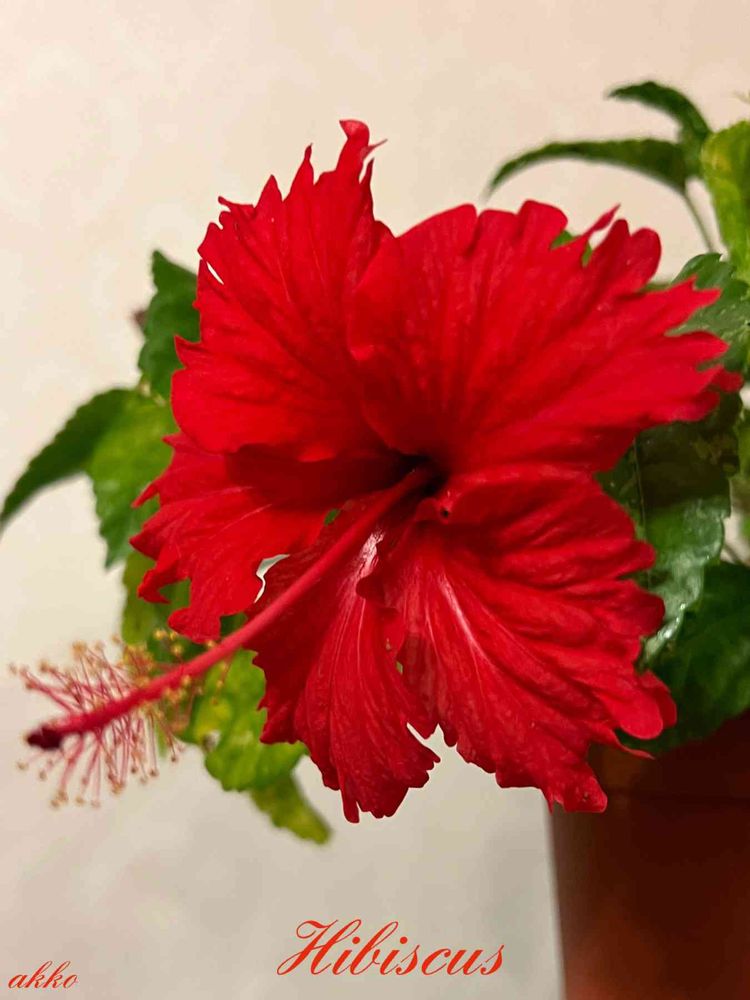 寝室,斑入り葉のハイビスカス 赤花,美しい花の投稿画像