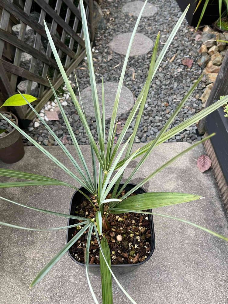 うちのヤシはほぼほぼ羽状葉ヤシですが珍しく掌状葉ヤシ。