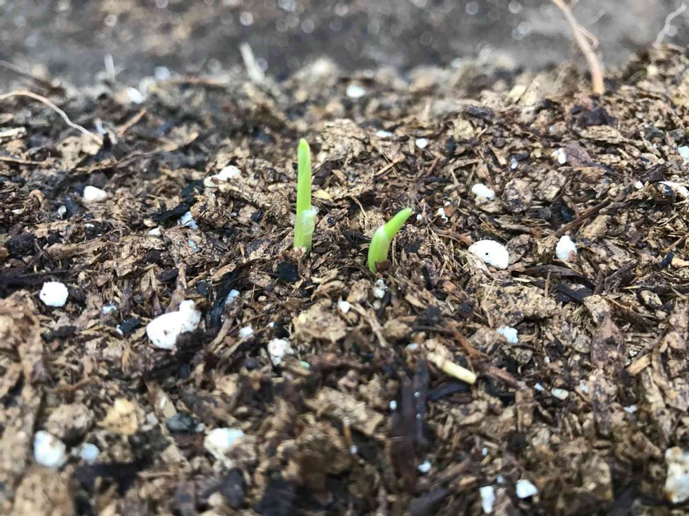 我が家の小さな農園に今年はなんとハニーバンタム🌽もチャレンジ!!こちらも芽🌱が出ました。楽しみです!😆