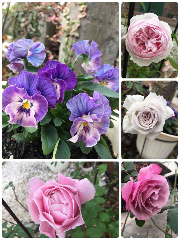 右真ん中は、ミニ薔薇のアイムーン🤍この時期になって、やっっとで見られるお花になってきました💦来年夏は咲かせないと決めました😅香りのあるミニ薔薇です☺️