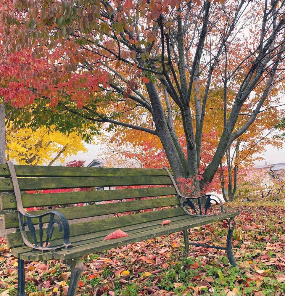 紅葉とベンチが素敵なお庭ですね🍁🍁
