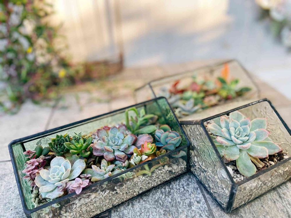 お友達が作ってくれたくれたステンドグラスのテラリウムボックス🍃
