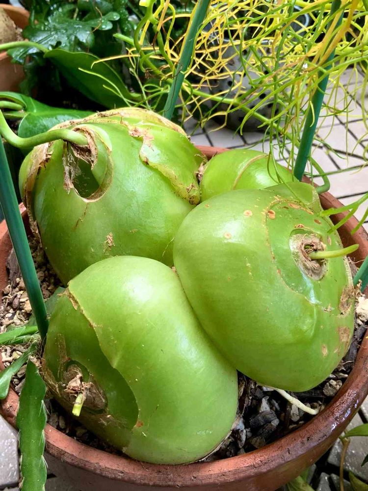 葉っぱが枯れてきたので切ってみたら、おまんじゅうが4個に増えていました。