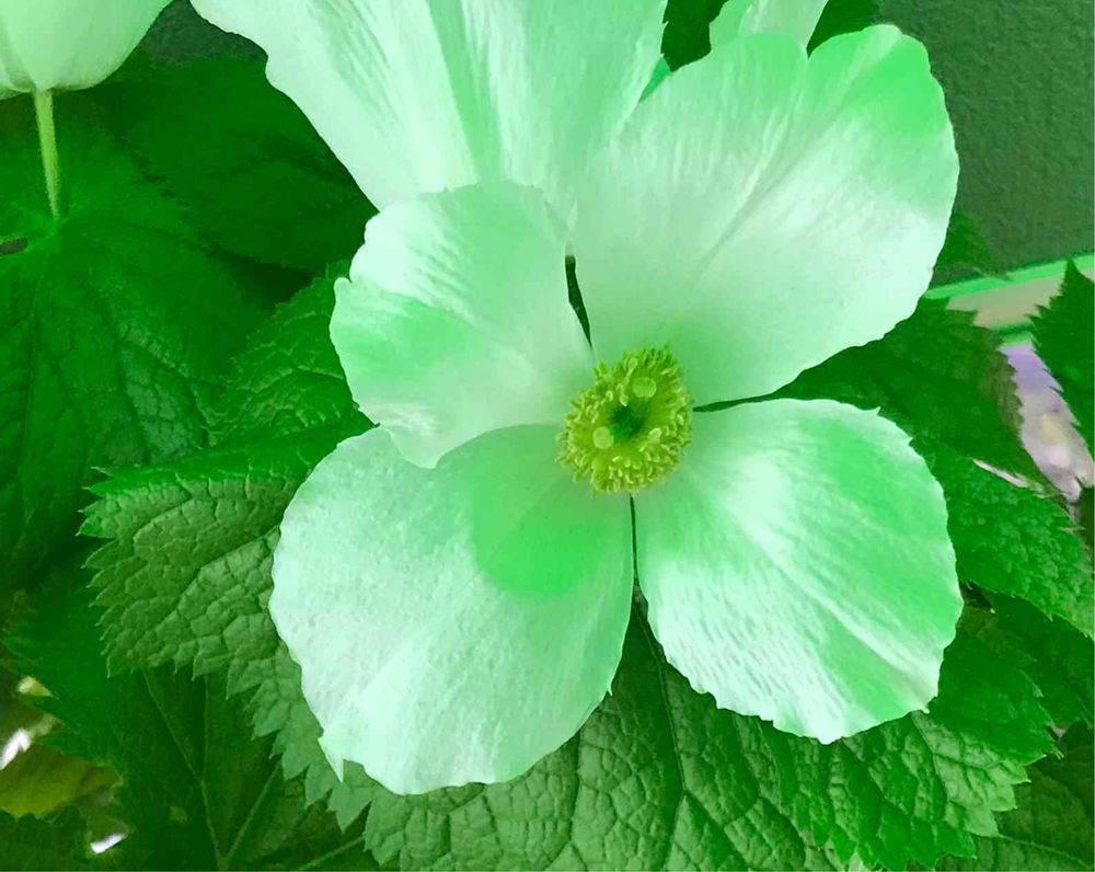 偶然にも白い花に映り込んだグリーンが幻想的にみえますかね^ ^