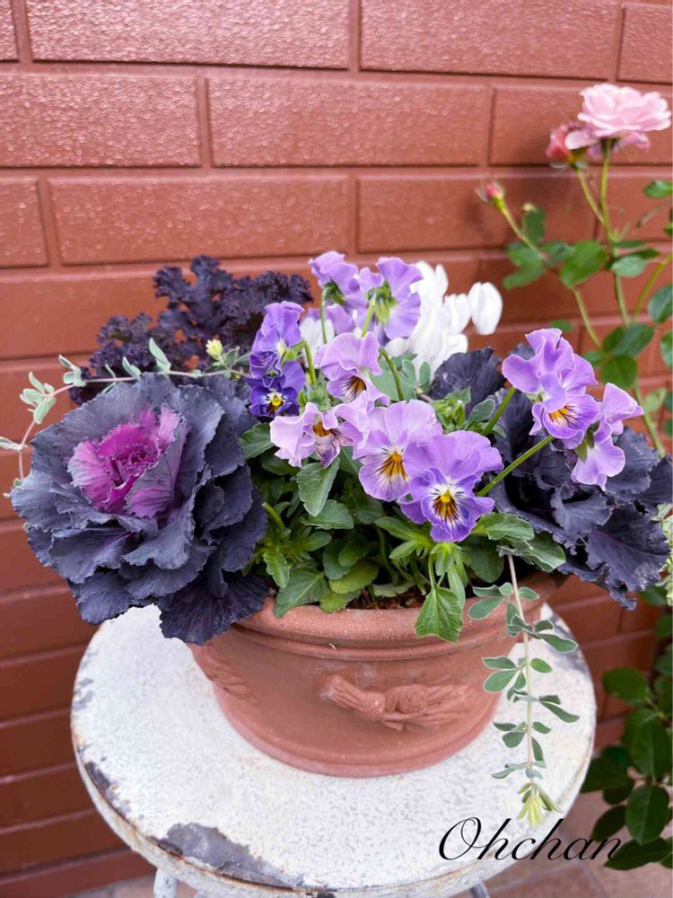 ビオラと葉牡丹の寄せ植え