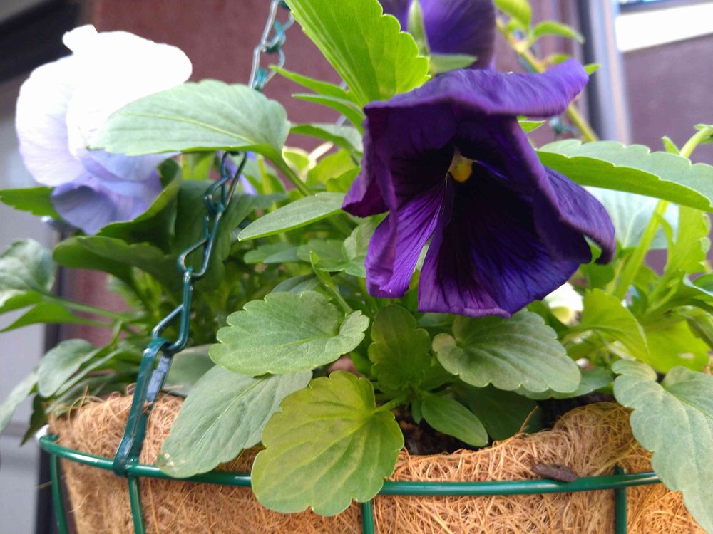 ハンギングにお花を植え付けました。蔓日々草が垂れ下がり可愛い仕上がりになりました。