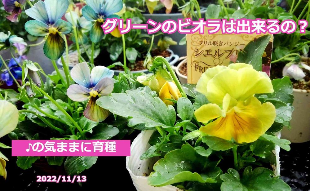 【ビオラ育種】ちょっと緑ぽいのシェルブリエ・・・・緑のビオラは作れるのか?検証開始