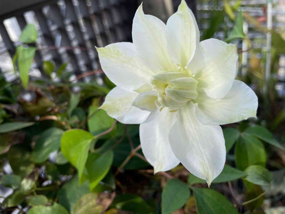 真っ白なクレマチスが一輪だけ健気に咲いてくれました✨🤍🌿🤍嬉しいですねー💕