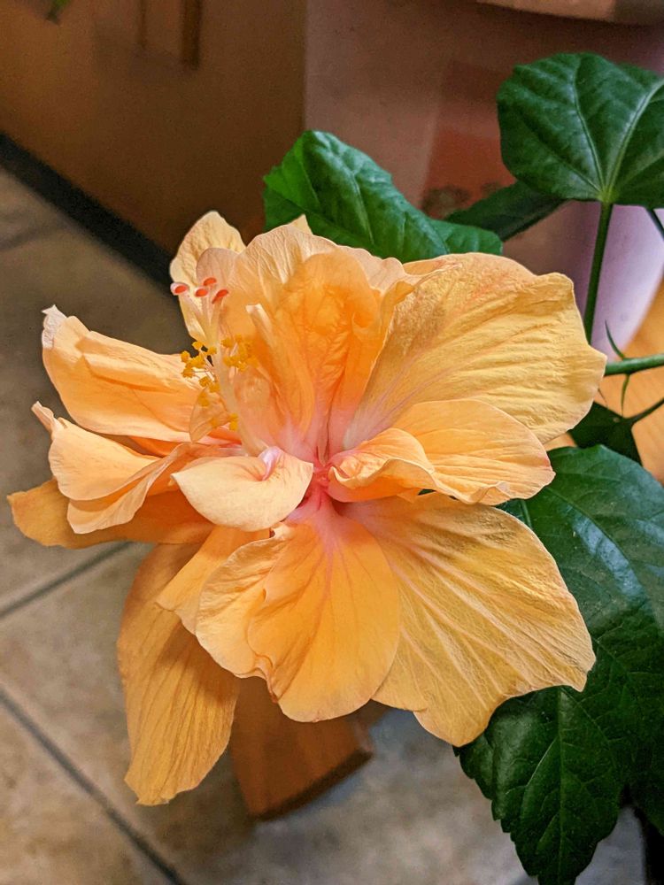 庭で虫を避ける為→玄関に避難!元気になって花まで咲いてくれました🤭カワイイ💕