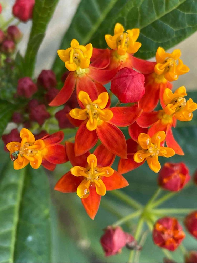 数10cmぐらいの樹高に濃いオレンジ色の小さな花をつけたトウワタの花💖