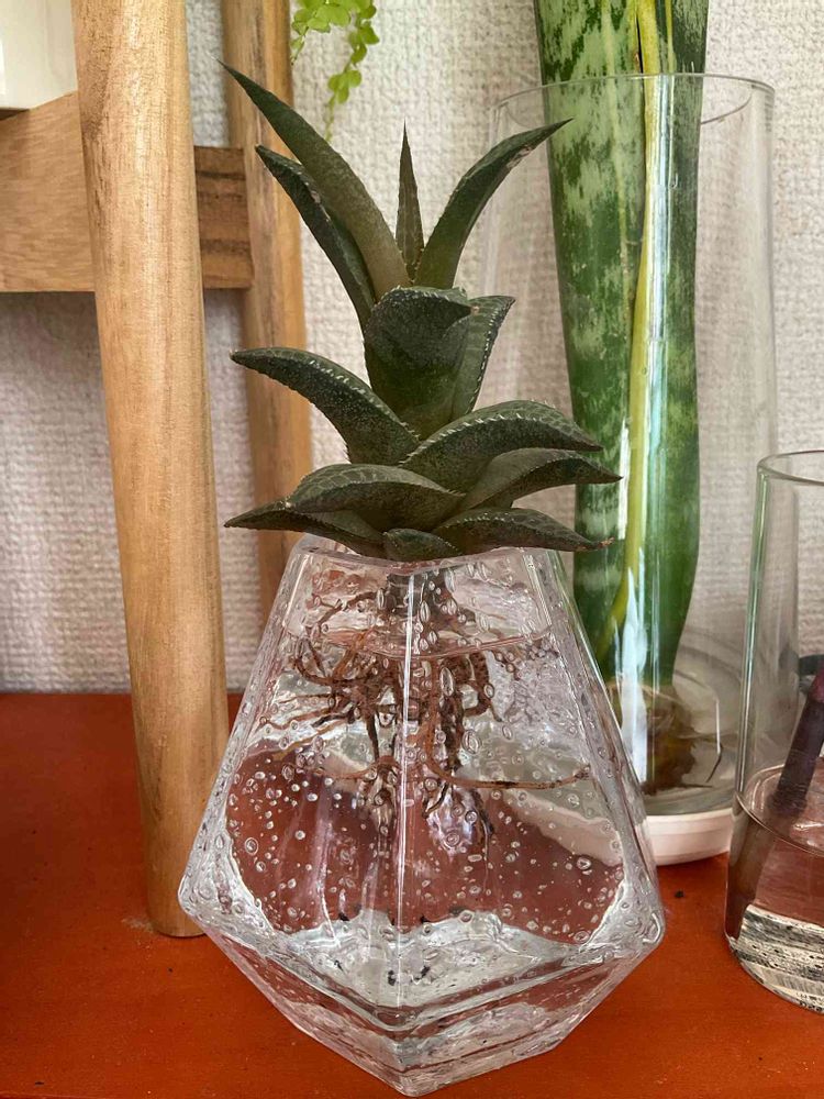 ハオルチアが茶色くなってきてしまったので水栽培に切り替えて様子見