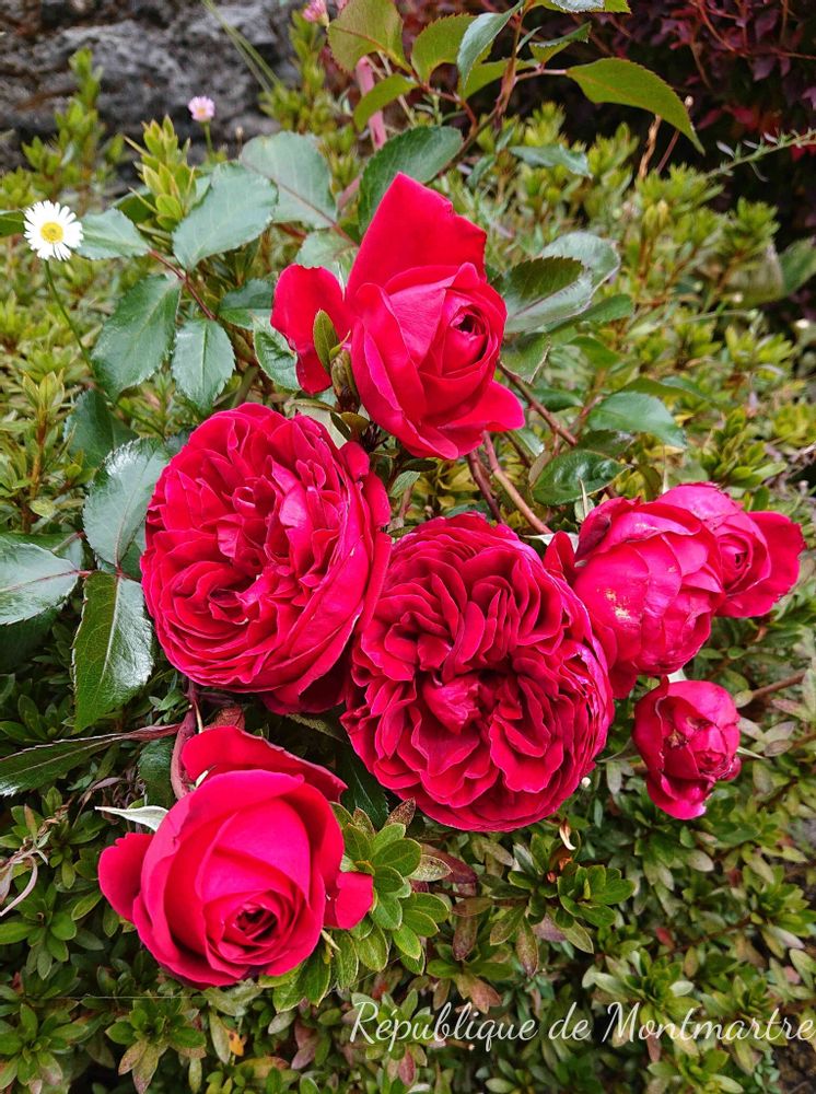 ビューンと伸びたシュートがサツキの上に乗って咲きだしました😂