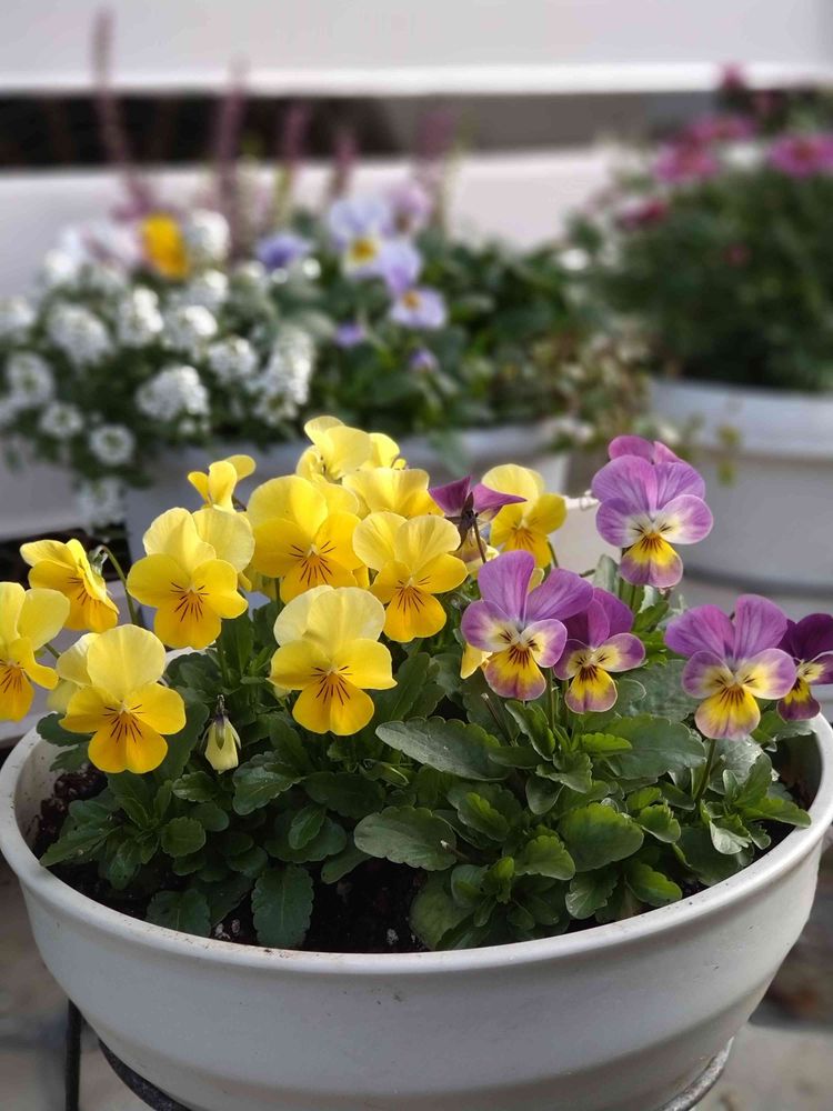 ビオラさんこうして色違い植えるとカワイイですね💛💜💛💜💖