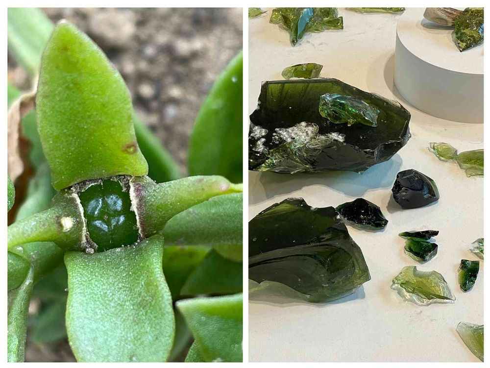右はミッドタウン内で展示されていた作品で、いろいろな場所の黒曜石の破片を溶かして混ぜて新たに作ったものだそうです🪨