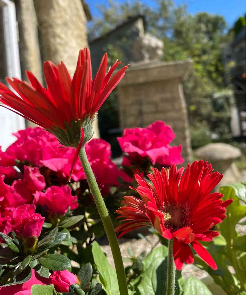 ガーベラは切花でしか見たことなくって地植えは始めて見ました☺️