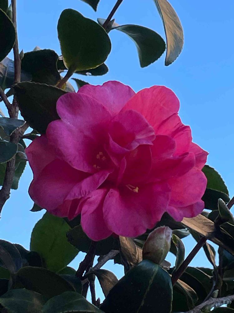 今日も良い天気☀️赤い山茶花🌺に元気貰ってガンバッ⤴️(๑・̑◡・̑๑)っ