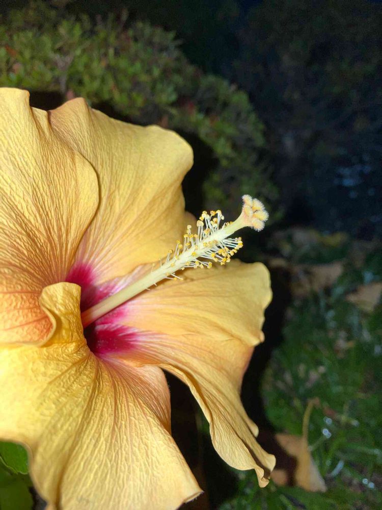 わ、びっくりした(☉︎౪ ⊙︎)❀︎こんなに花びらが鮮明に。いつぞやのガーデンハイビスカス🌺が咲いていました♪