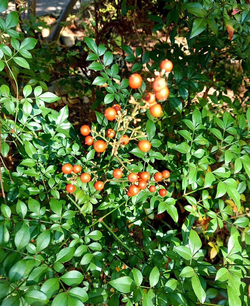 咳止めや食品の防腐等に使われるアルカロイドを含む葉や果実が赤く色づいてきたナンテン(南天)❤️😊