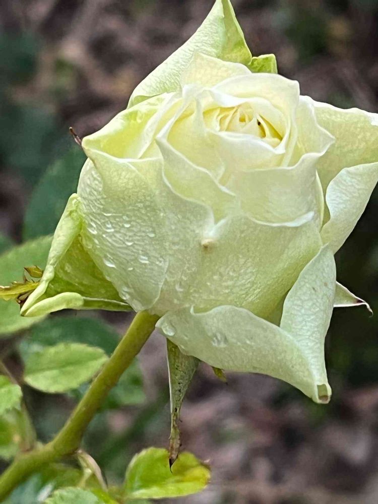 バラ アンバティーク🤍💚🤍切花品種この秋 森農園から購入しました✨蕾付きだったけど苗は超コンパクト💦ちゃんと咲くかなー❓🤔