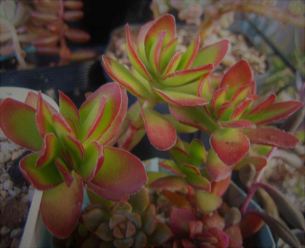 @多肉愛 さんよく日のあたりすぎのほったらかし?の割と過酷な環境がよかった?のでしょうか?我が家のブロンズ姫様と同じ環境の天狗様です違う所に置いてる天狗様は赤くなってません。何でしょうね?