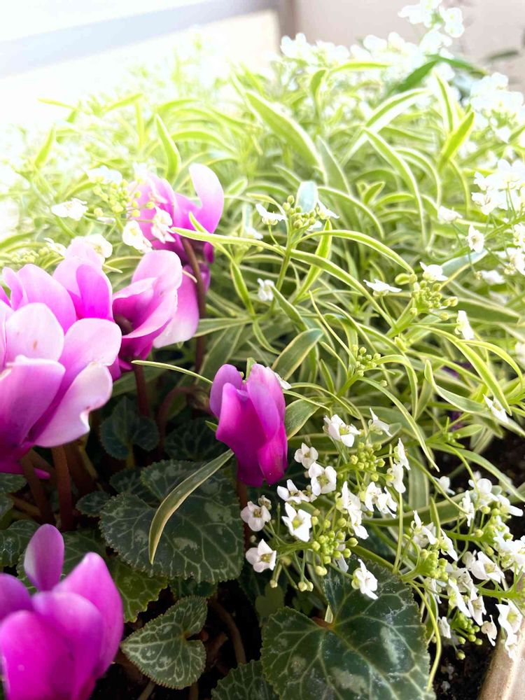 バルコニー/ベランダ,ガーデンシクラメン,斑入りアリッサムの投稿画像