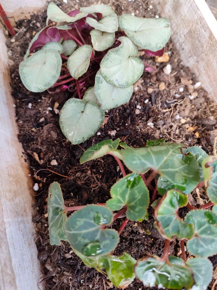 上は、シクラメンコウムさんです。白色の葉っぱが、素敵です。