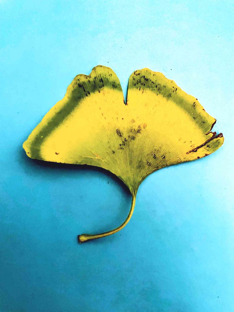 仕事、休憩中に歩道の銀杏の葉