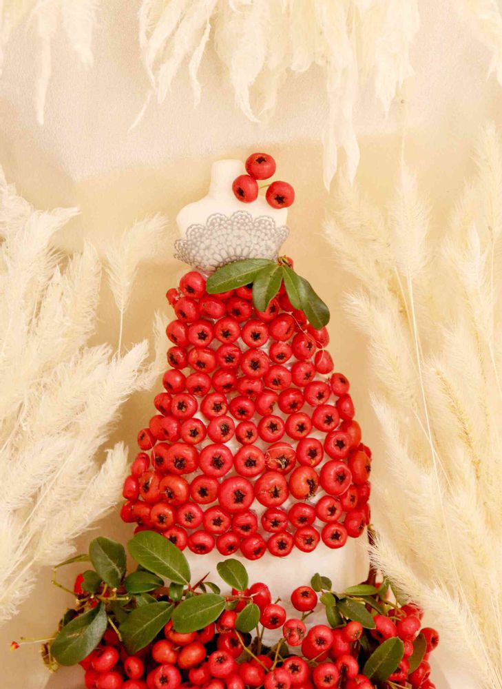 落ちてた赤い実をもらってきてドレスに仕立てました👗