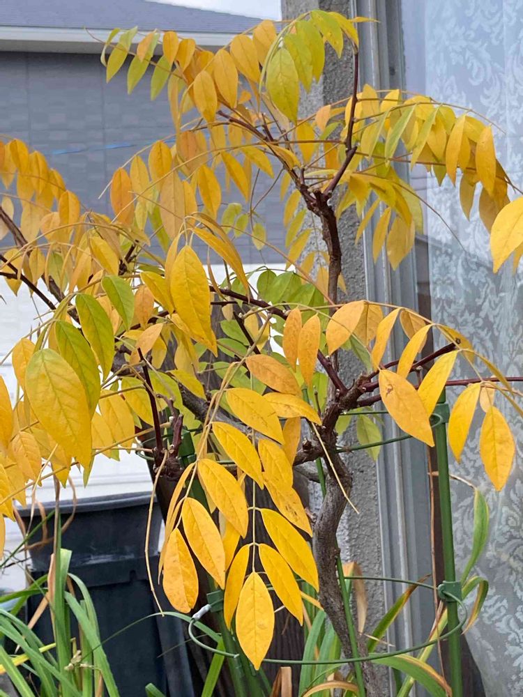 毎年、黄葉する前に水切れさせて葉が落ちていましたが、今年は綺麗に黄葉しました。