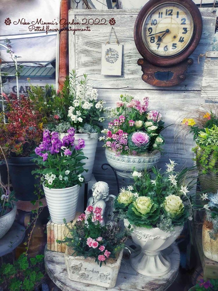 寄せ植えの寄せ鉢も統一感があって素敵です✨️