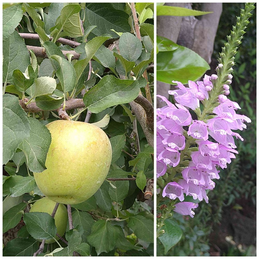 9月です😉 ブドウ畑を訪ねたら🍇 隣に居た可愛いりんごちゃん🍎 今は赤くなったかな😆 その日我が家で咲いていたハナトラノオさんです🐰