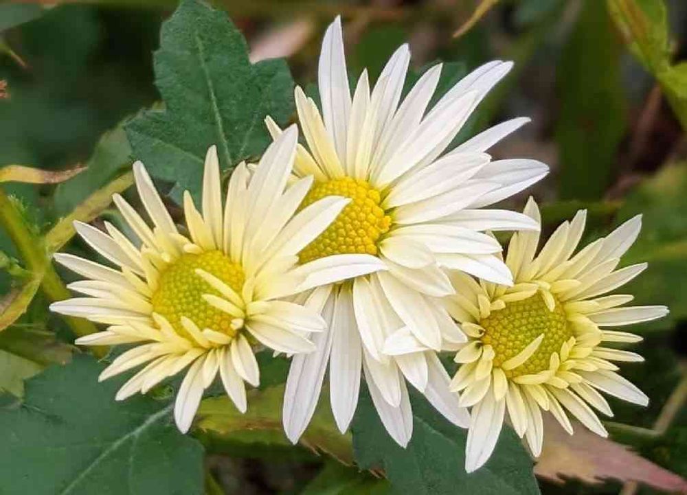 昨日 庭の奥の花壇でクリーム色の菊がきれいに咲いていました