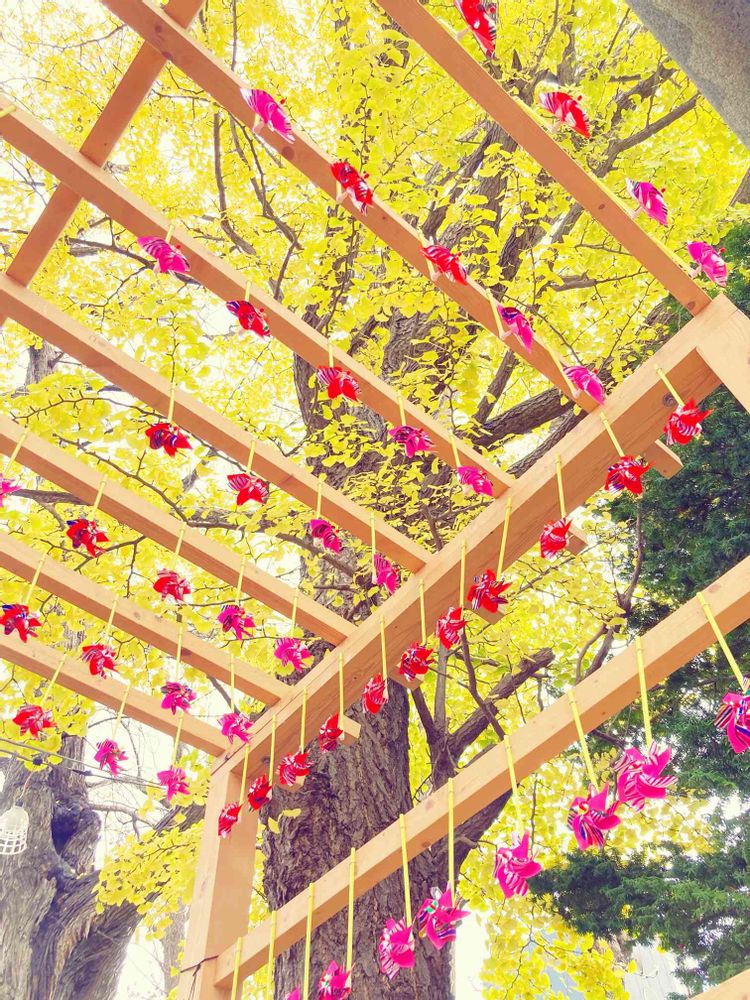 イチョウに風車を合わせるのが面白いですね💓