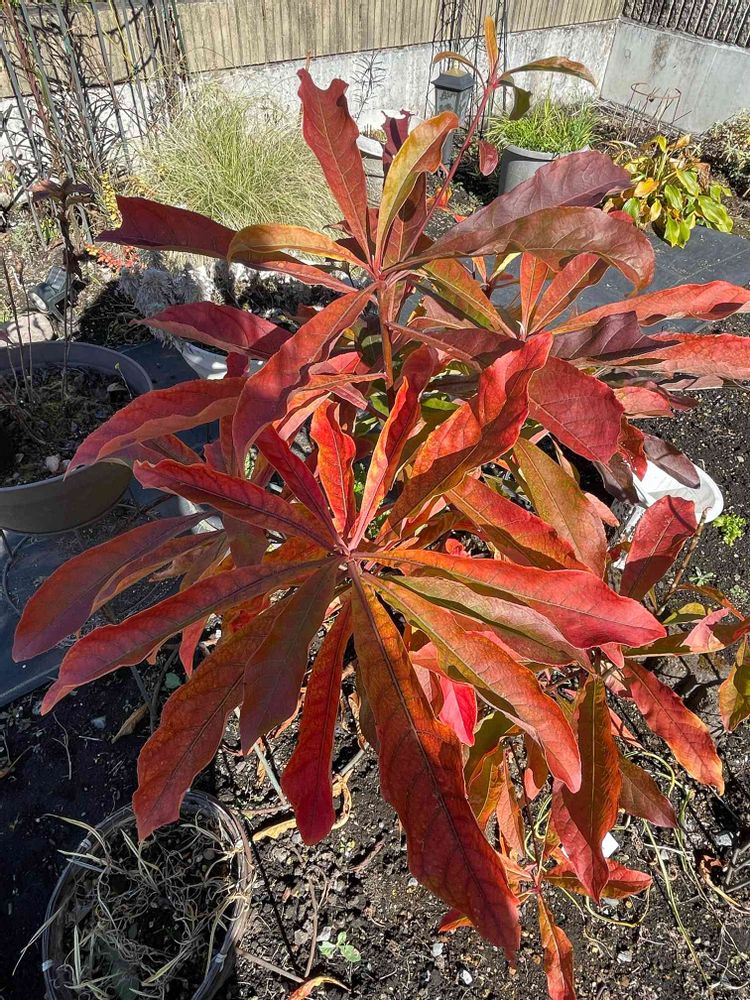今年初めて花が咲き、一本は花がつかなかったけど、葉っぱがとても綺麗に色付いています。