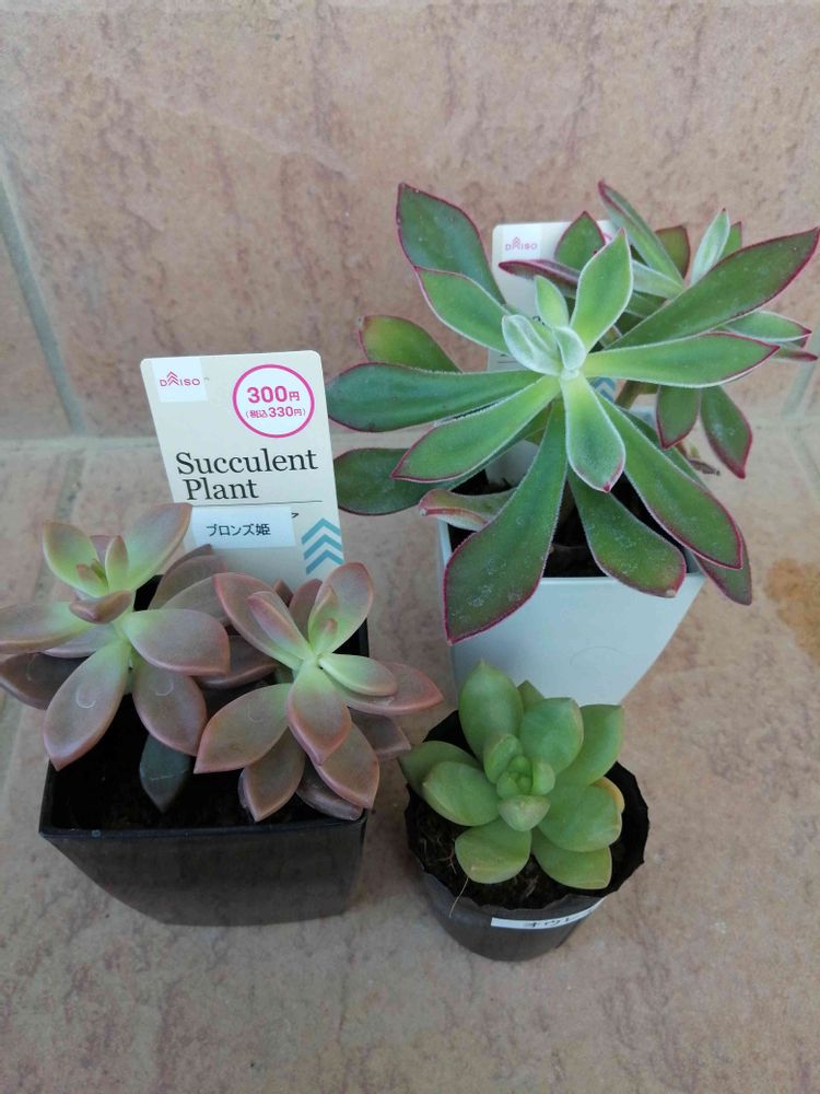 DAISOだったらピンクルルビー、チワワ、ヘラクレス、ラズベリーアイスだね🎵ホームセンターだった高砂の翁、エケベリア系だね✨